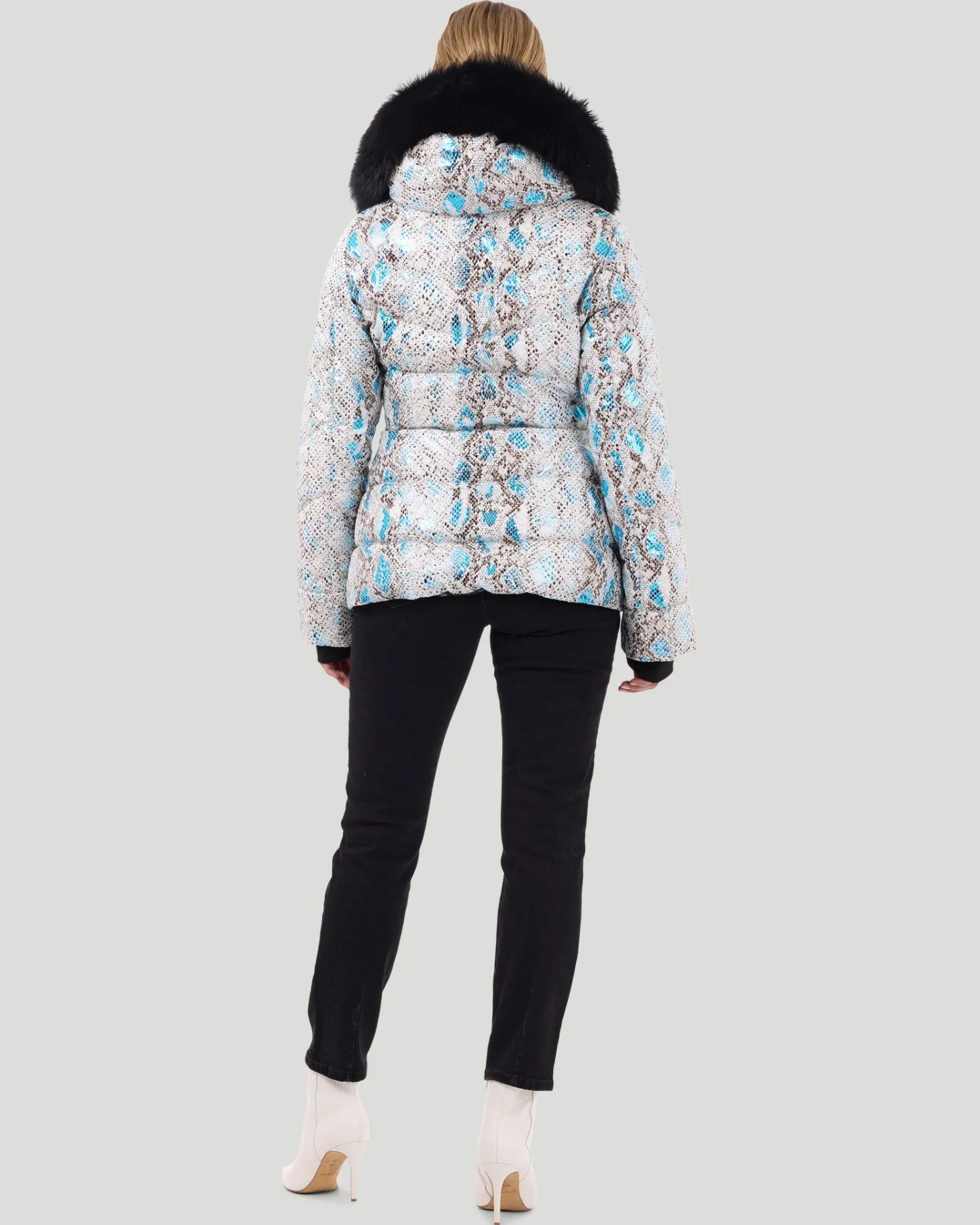 Down-filled Après-Ski jacket with detachable Toscana lamb (Spain) trim on the hood. Made in Italy. Tested in temperatures up to -25 degrees Celsius/77 degrees Fahrenheit.Features:Side pockets with snap closureZipper closure with placketWind cuffsCellphone pocket
