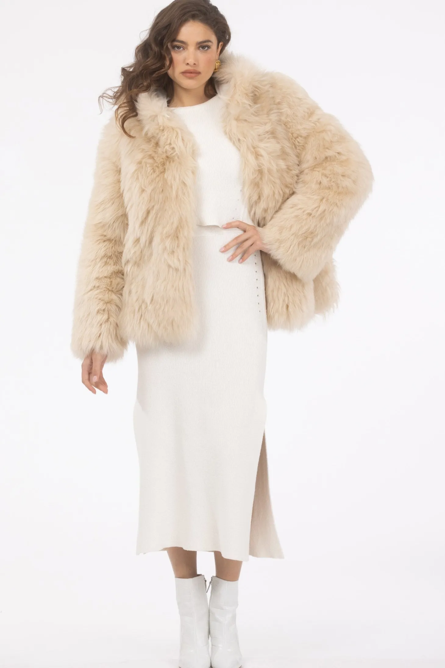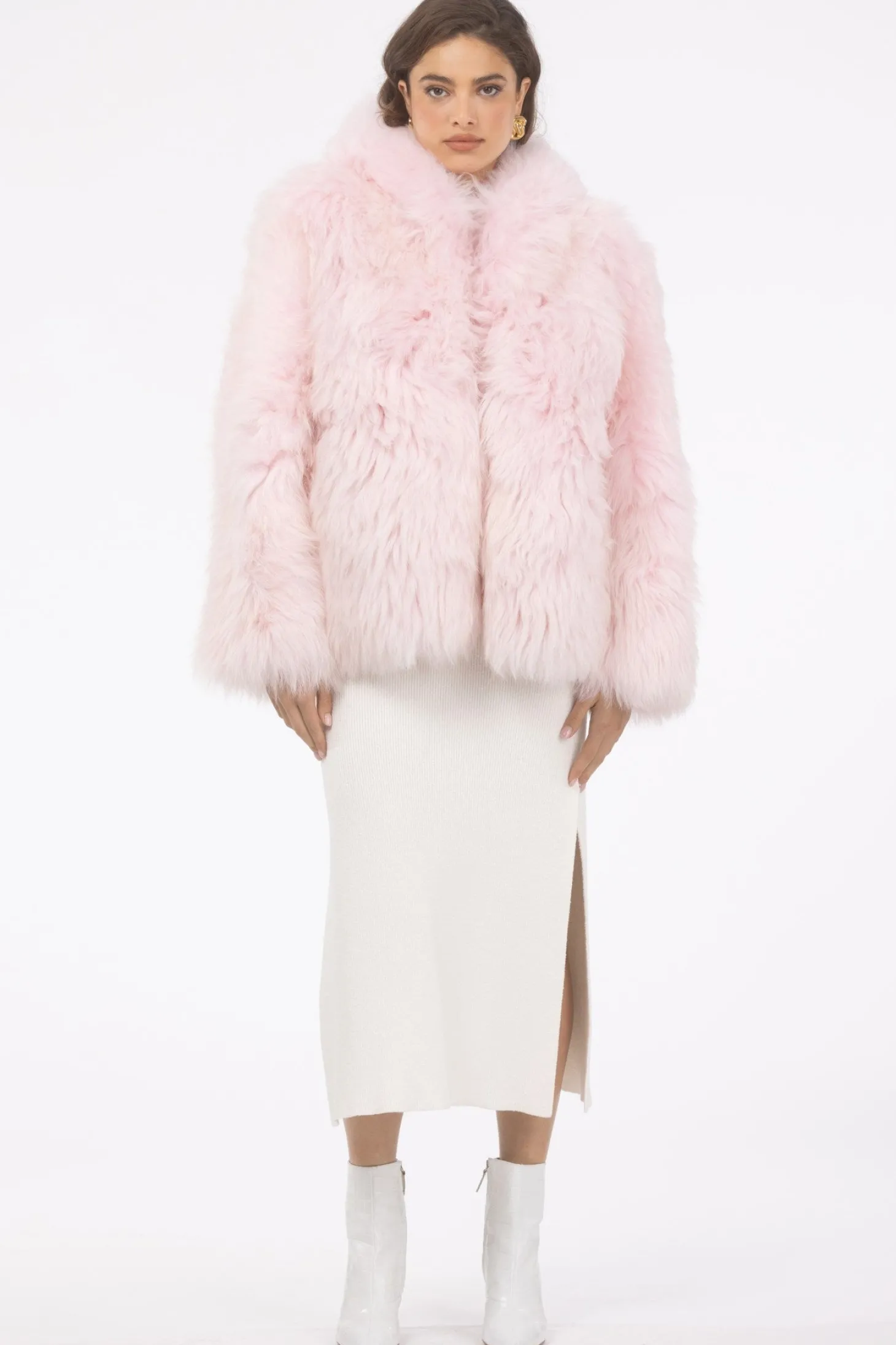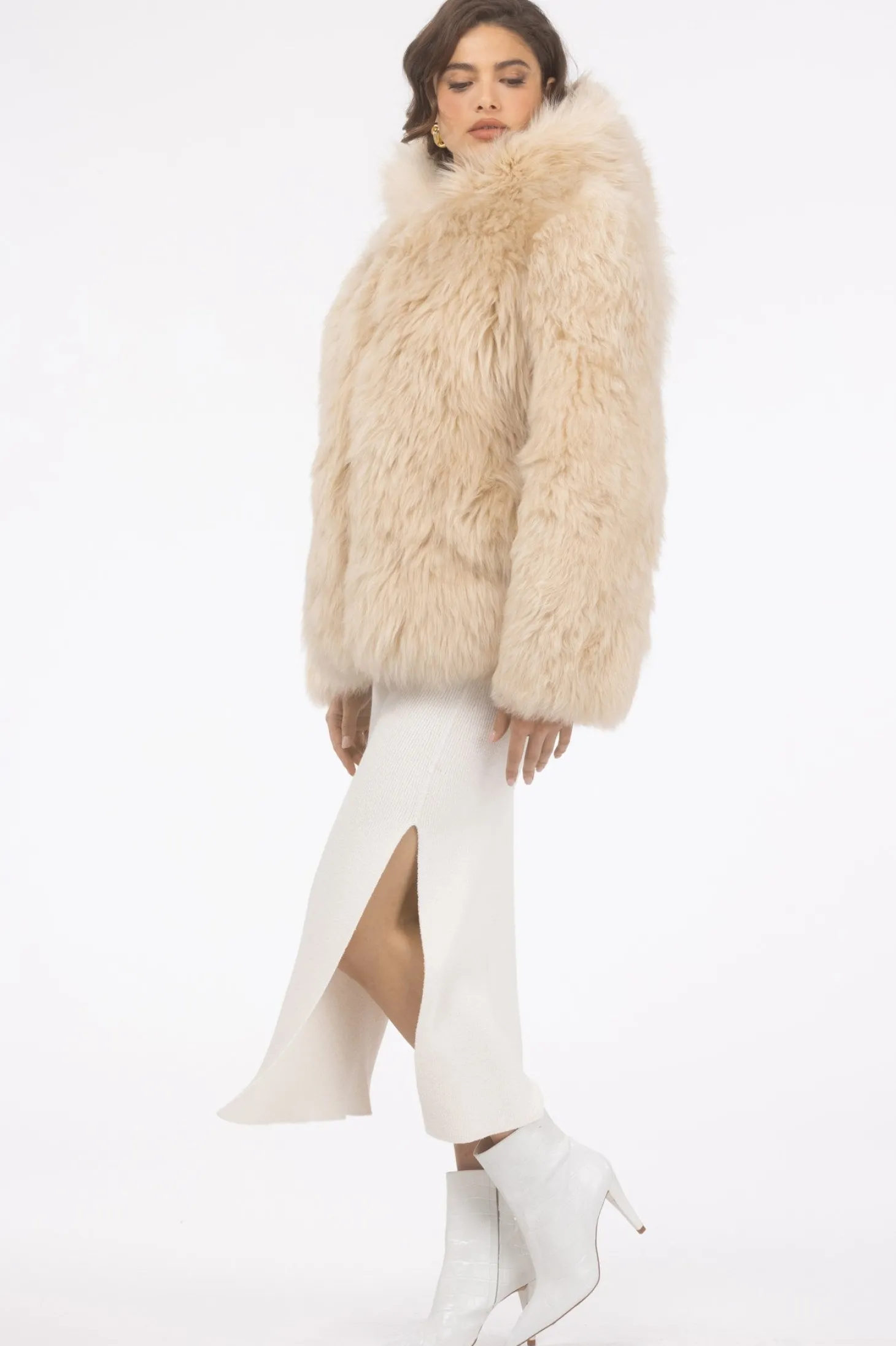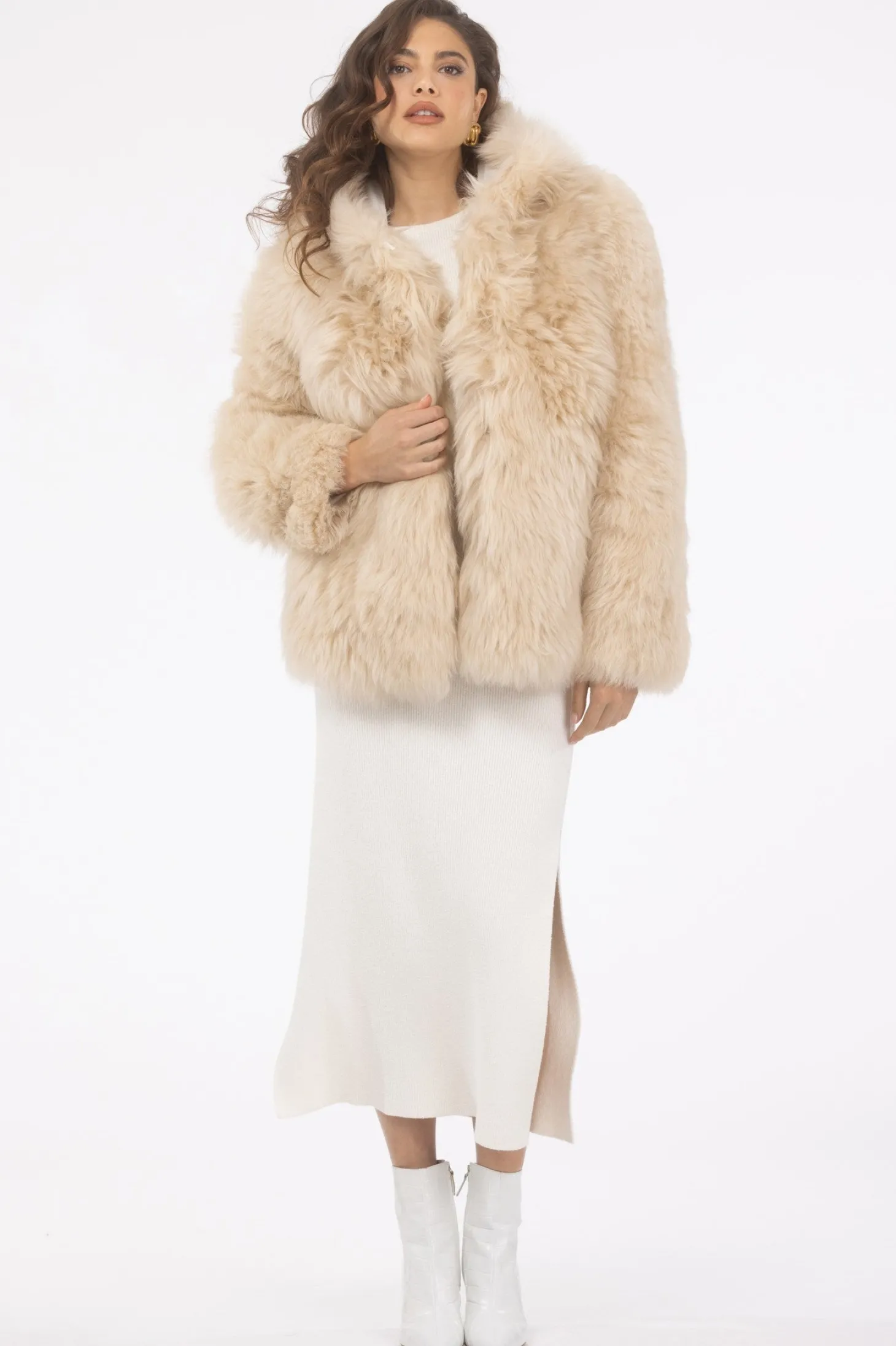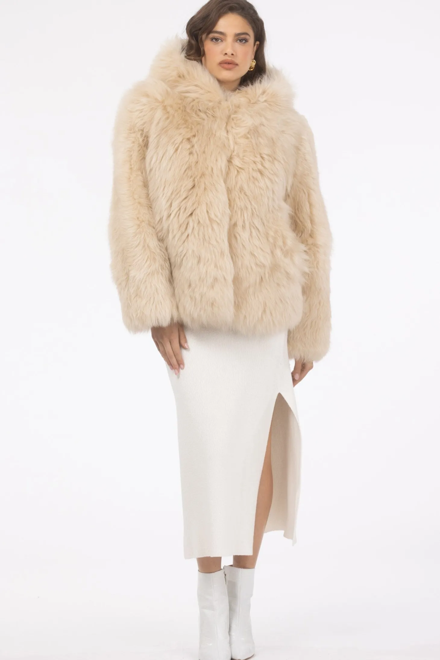 Select Shearling Lamb Chevron Parka With Quilted Sleeves And Back