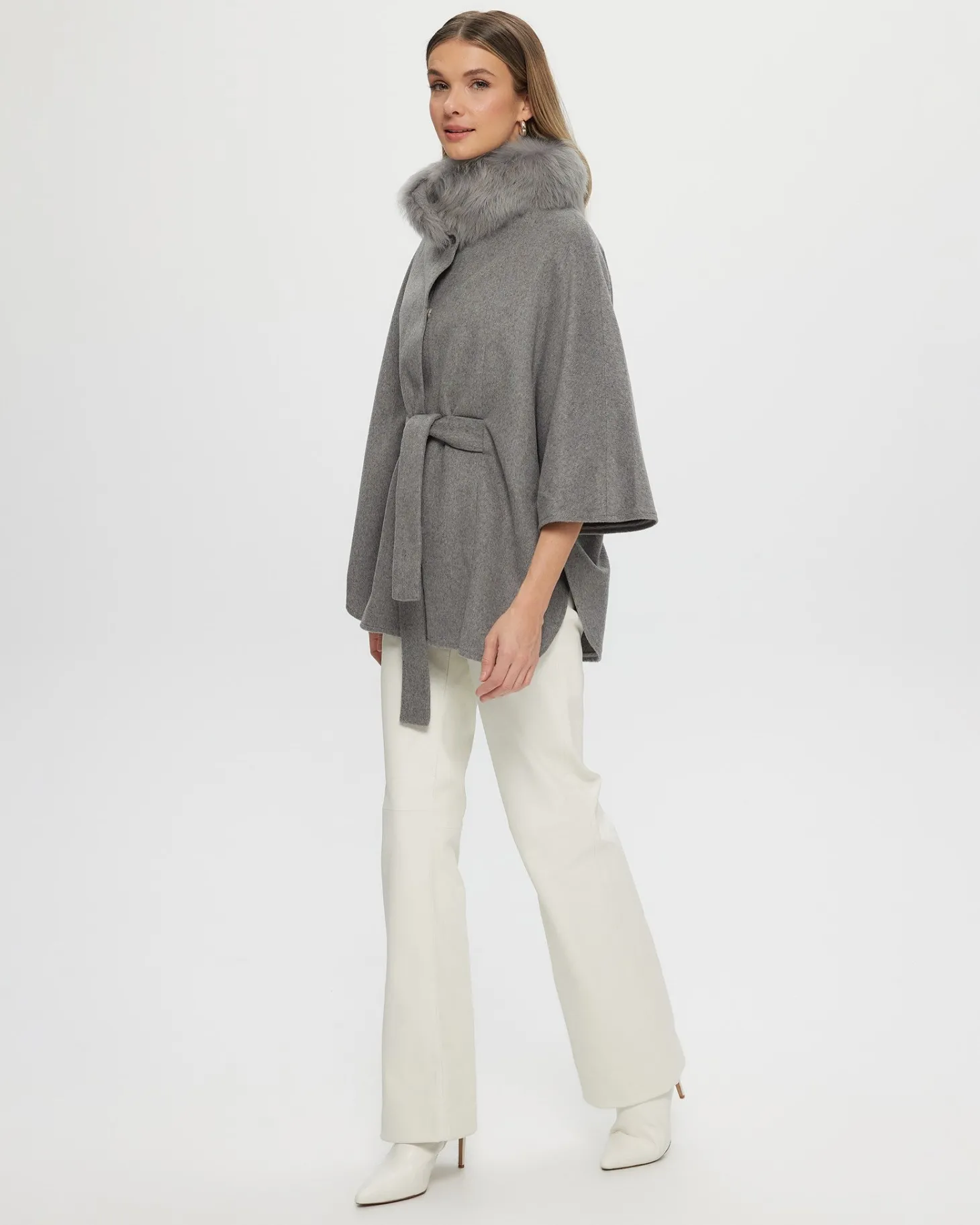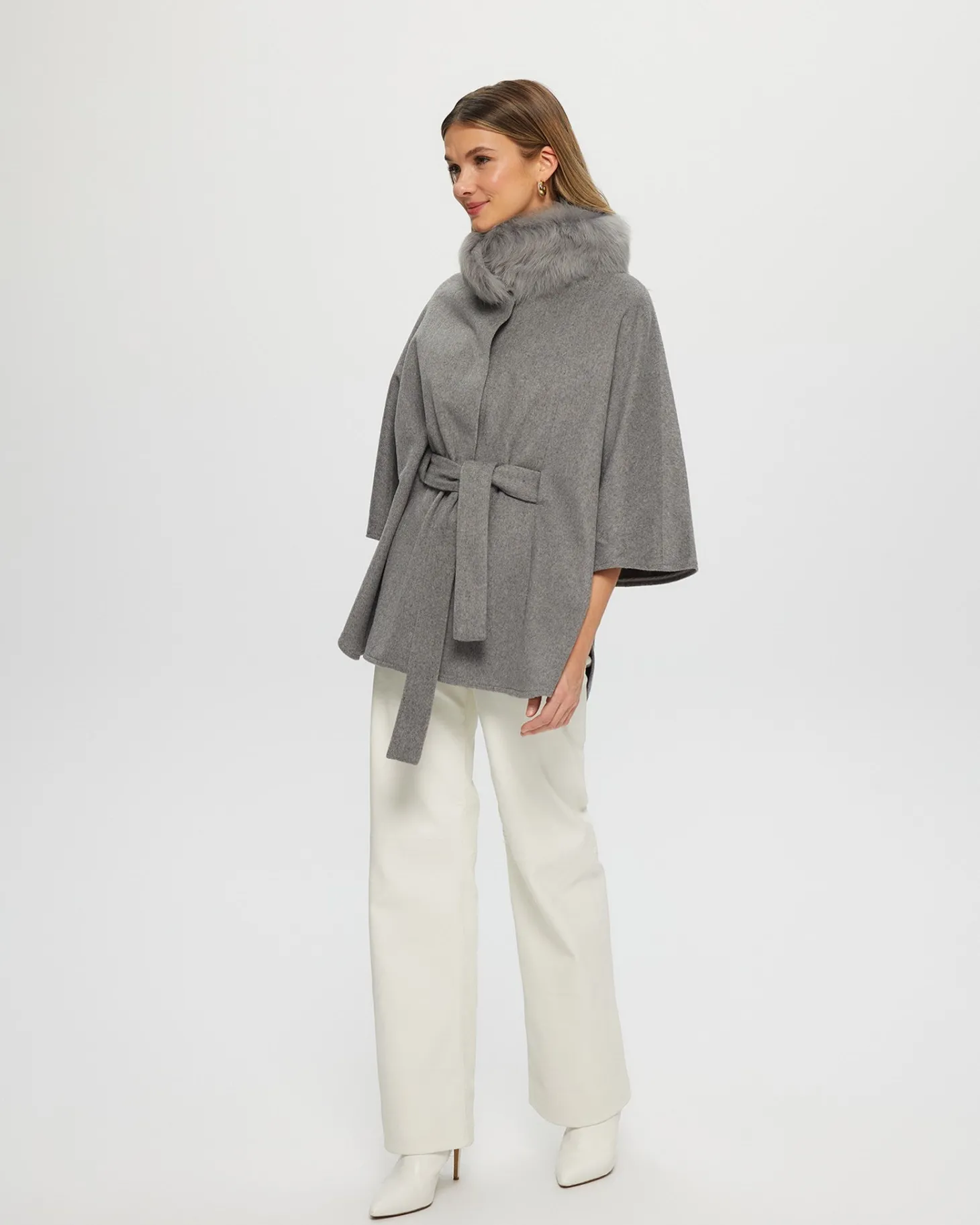 Loro Piana Cashmere & Wool Belted Jacket With Detachable Toscana Shearling Lamb Trim