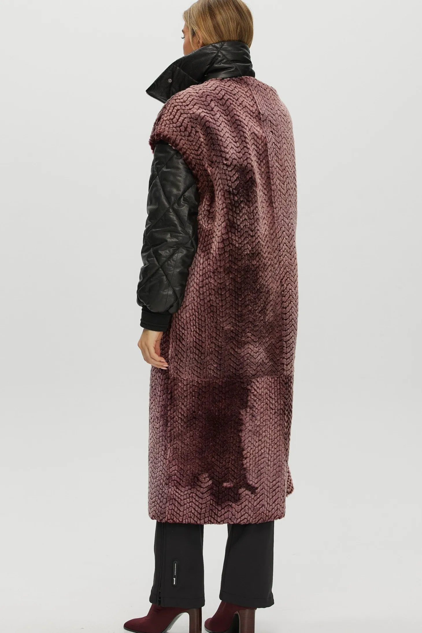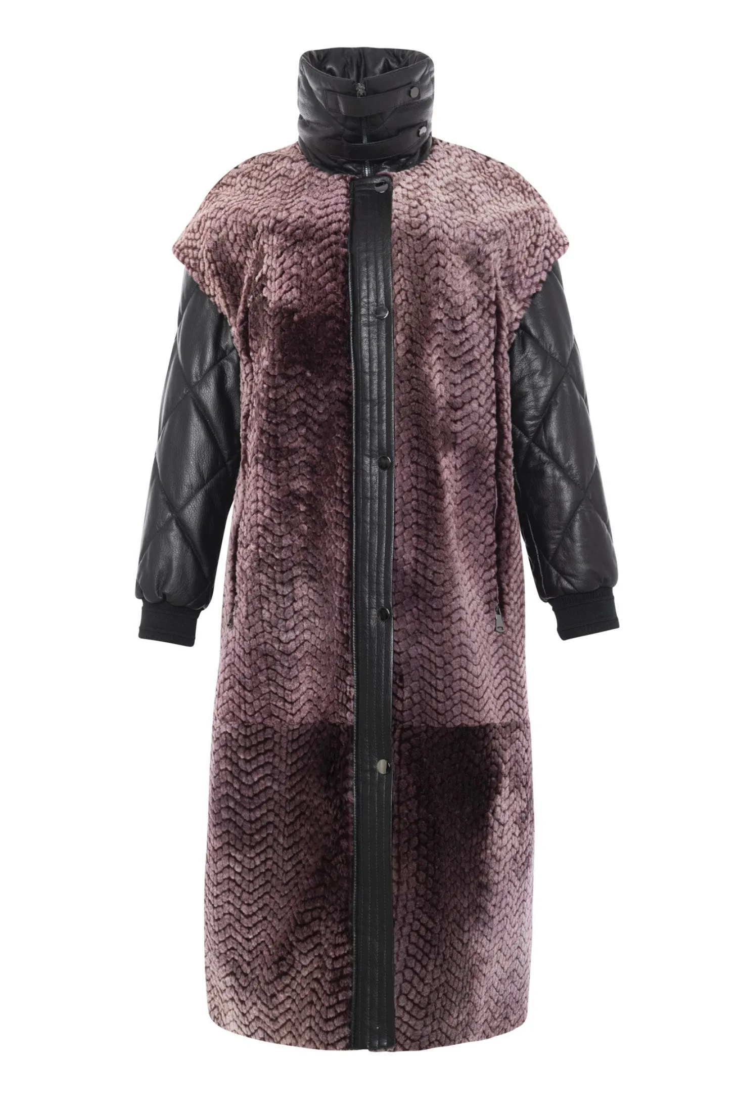 Select Shearling Lamb Chevron Parka With Quilted Sleeves And Back