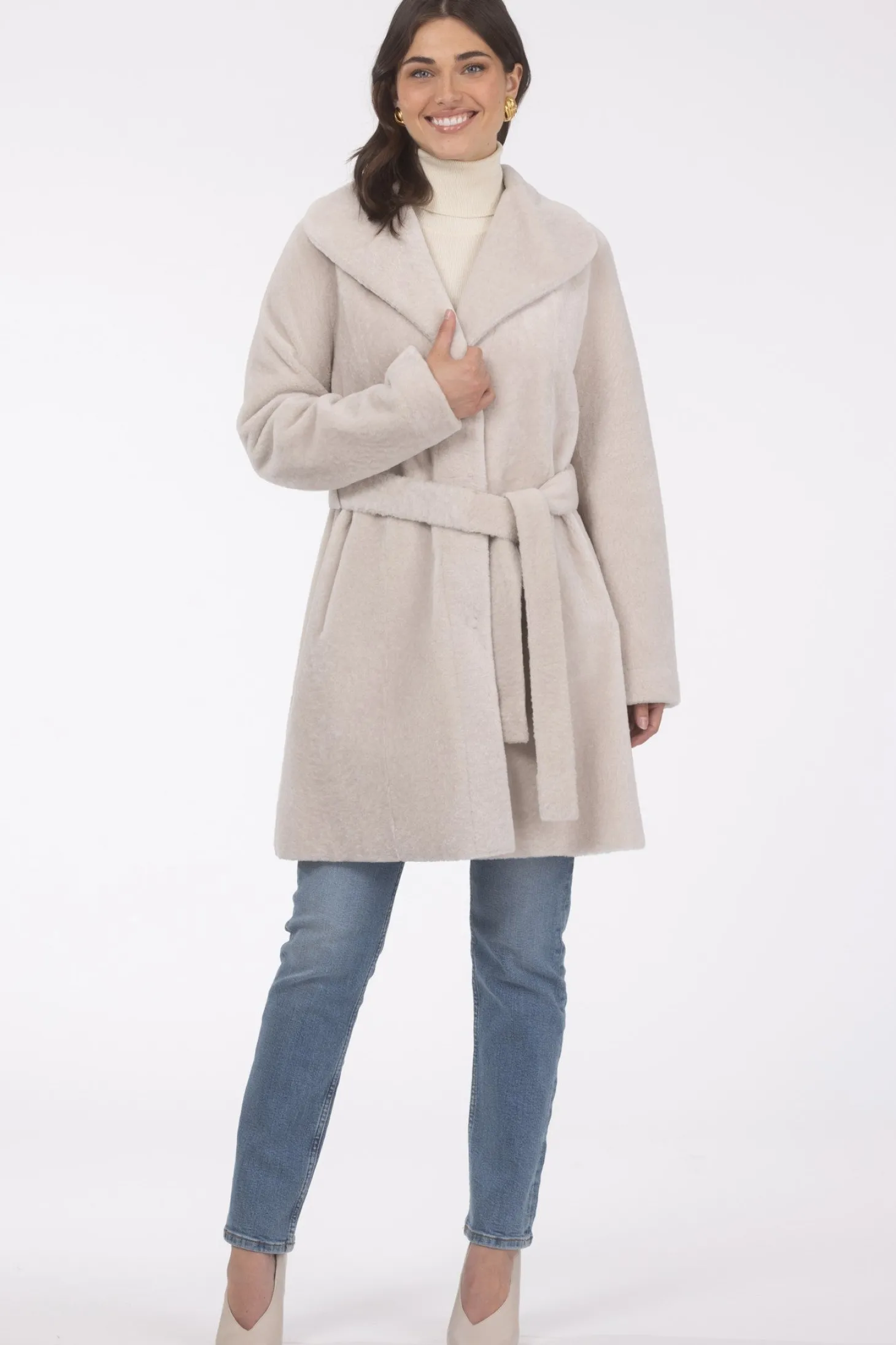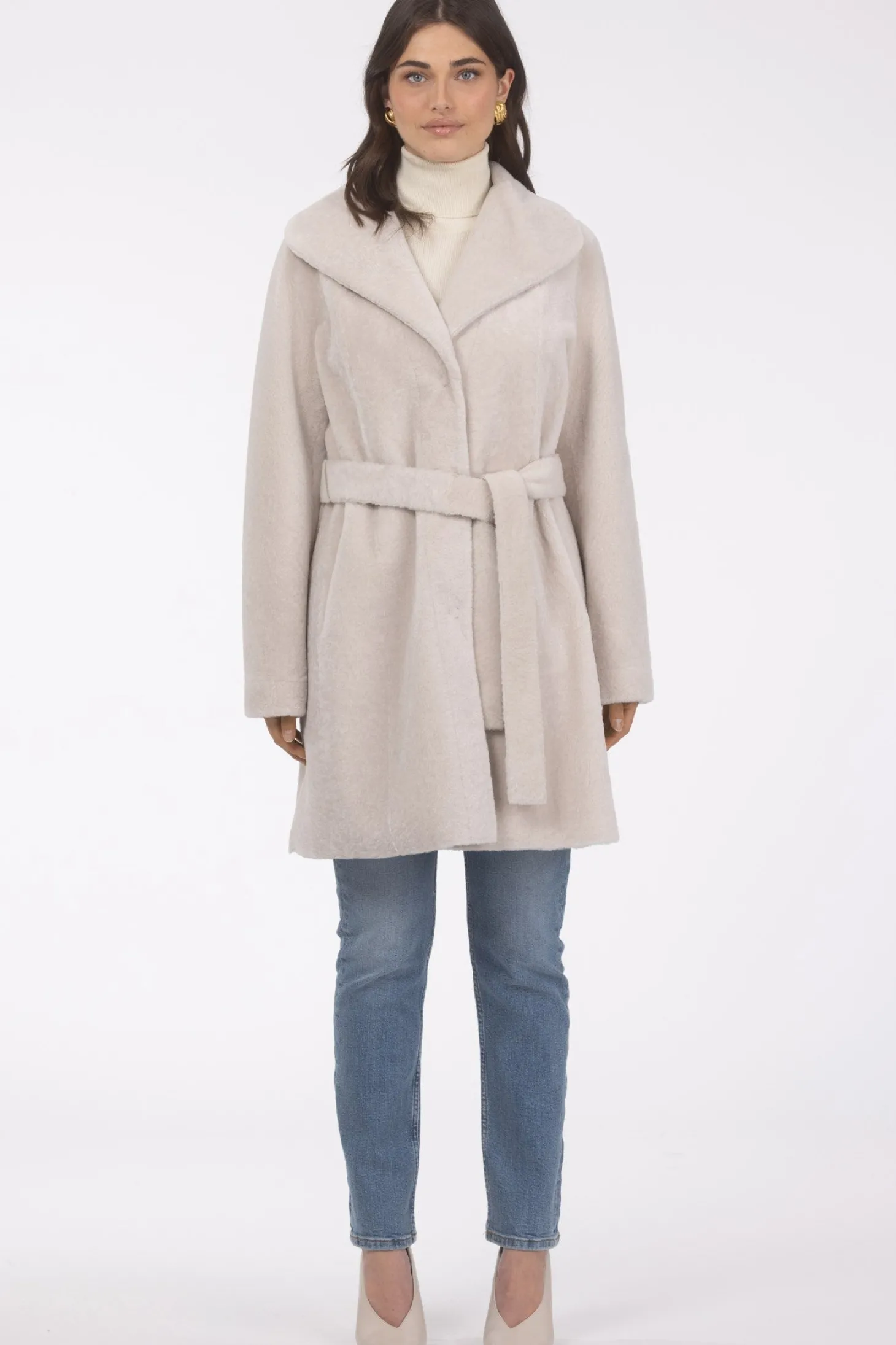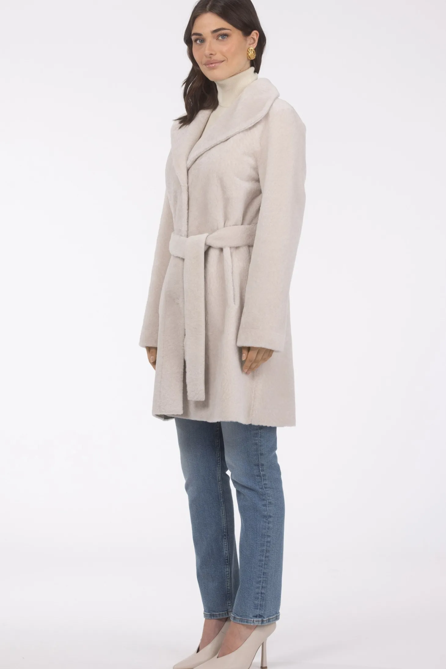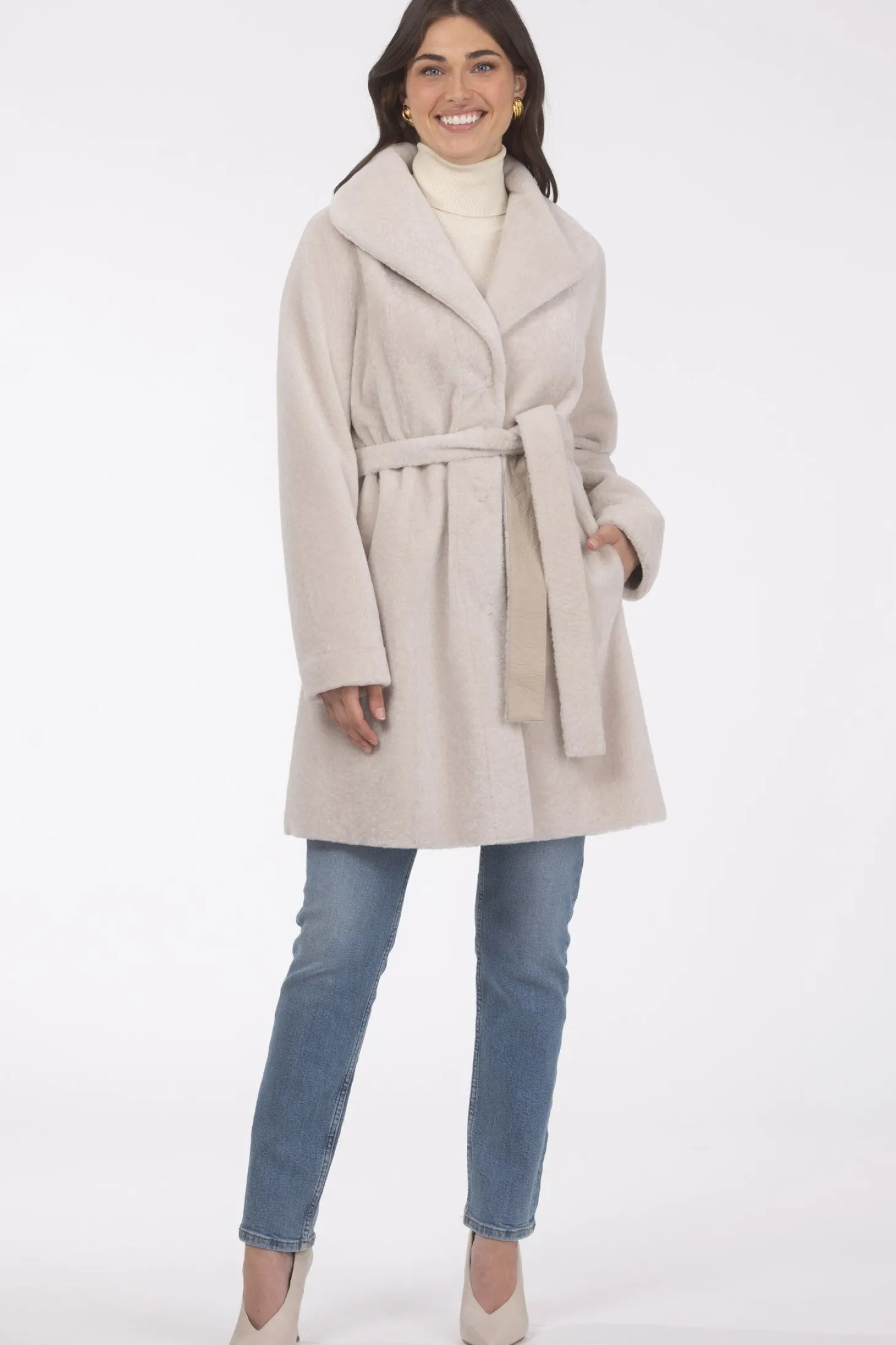 Loro Piana Cashmere & Wool Belted Jacket With Detachable Toscana Shearling Lamb Trim
