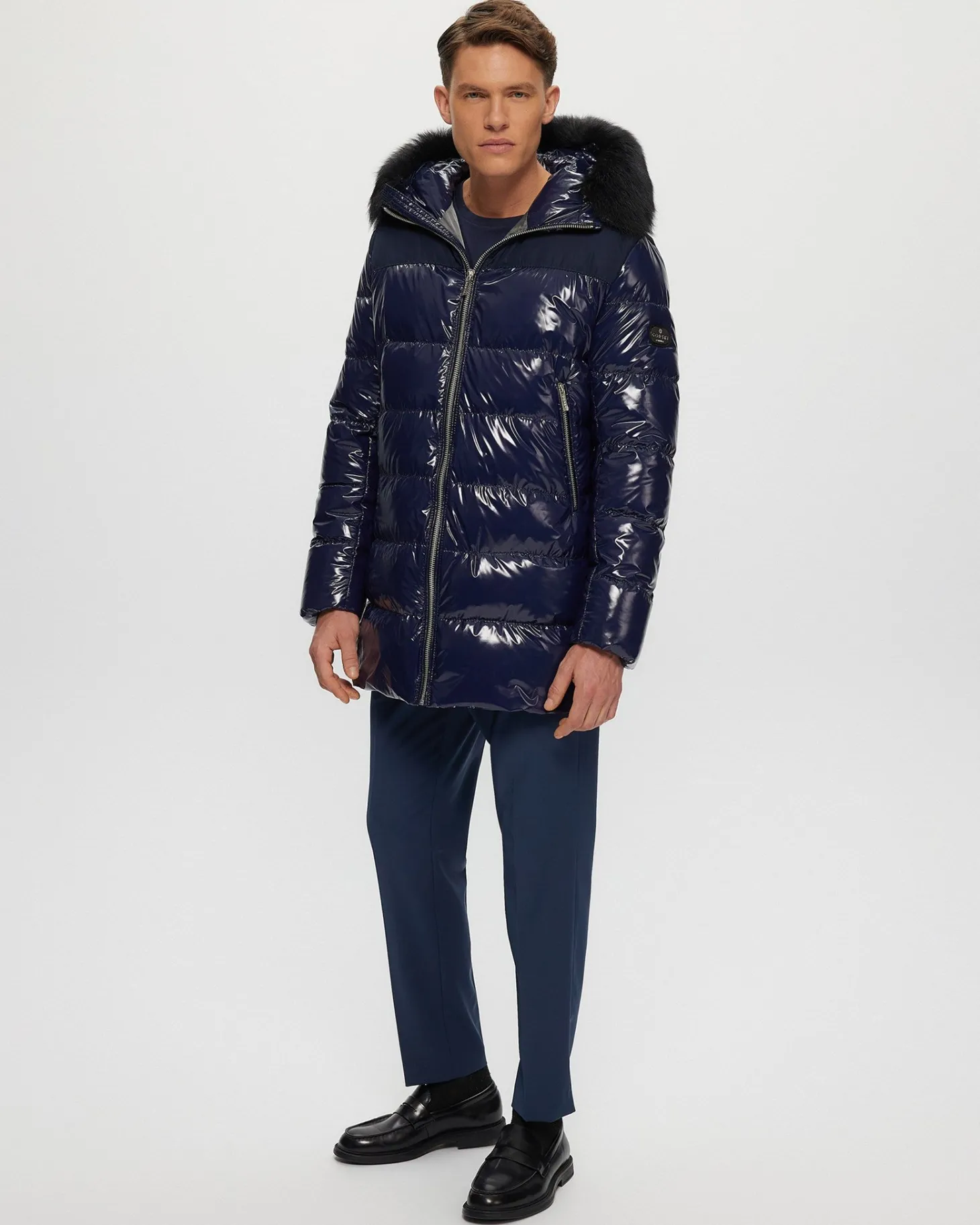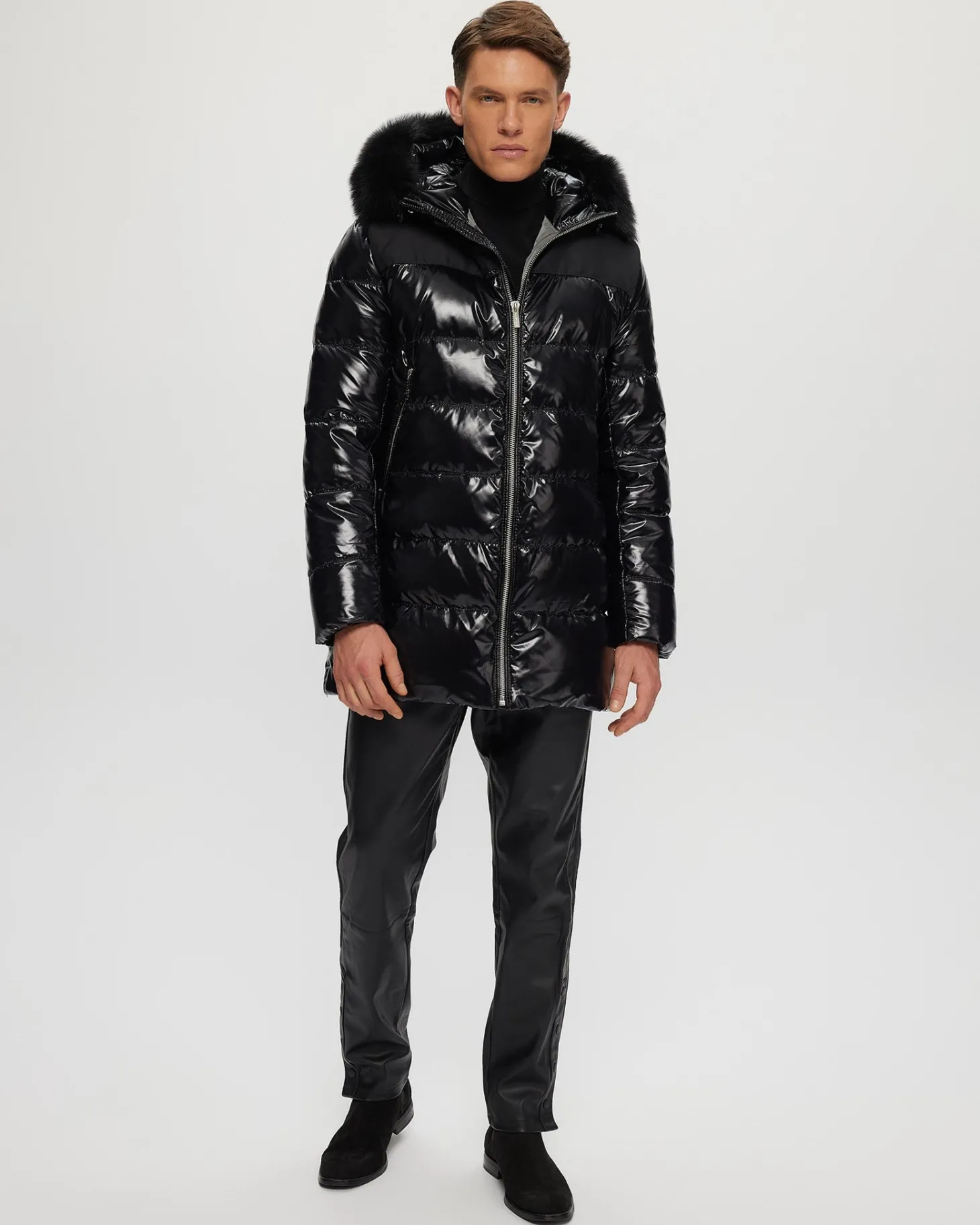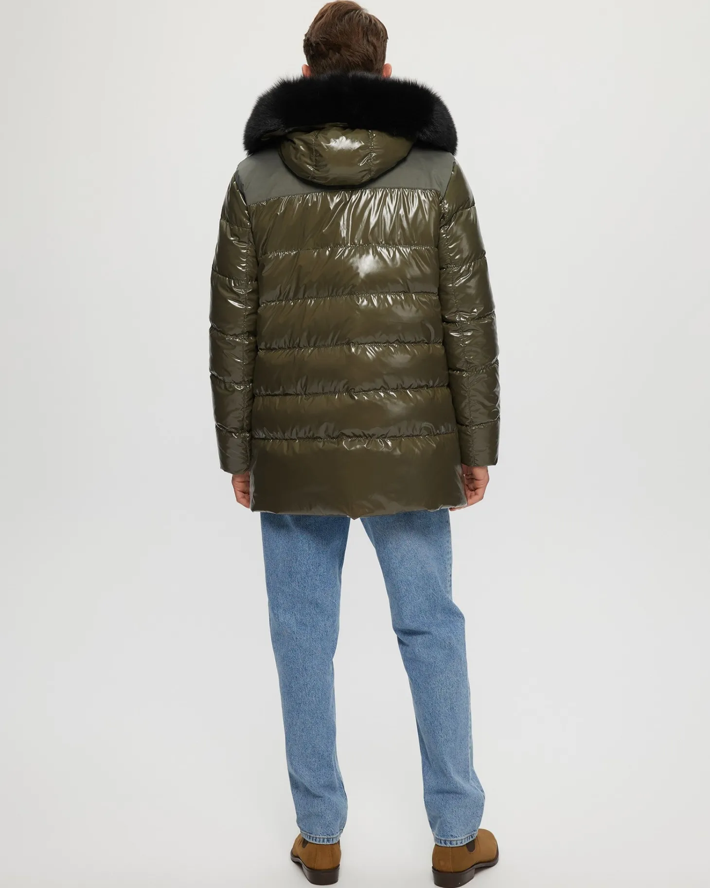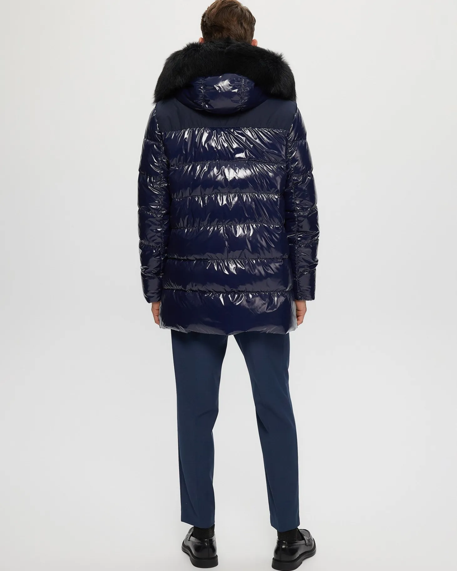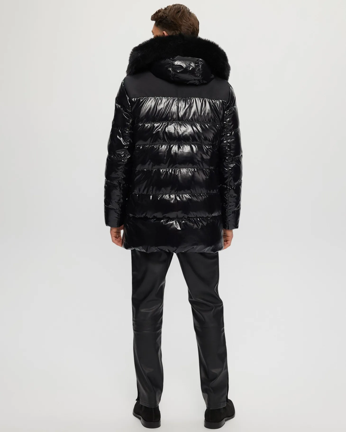 Down-filled Après-Ski jacket with detachable Toscana lamb (Spain) hood trim. Made in Italy. Tested in temperatures up to -25 degrees Celsius/77 degrees Fahrenheit.Features:Zipper closure with placketDetachable shearling lamb hood trim