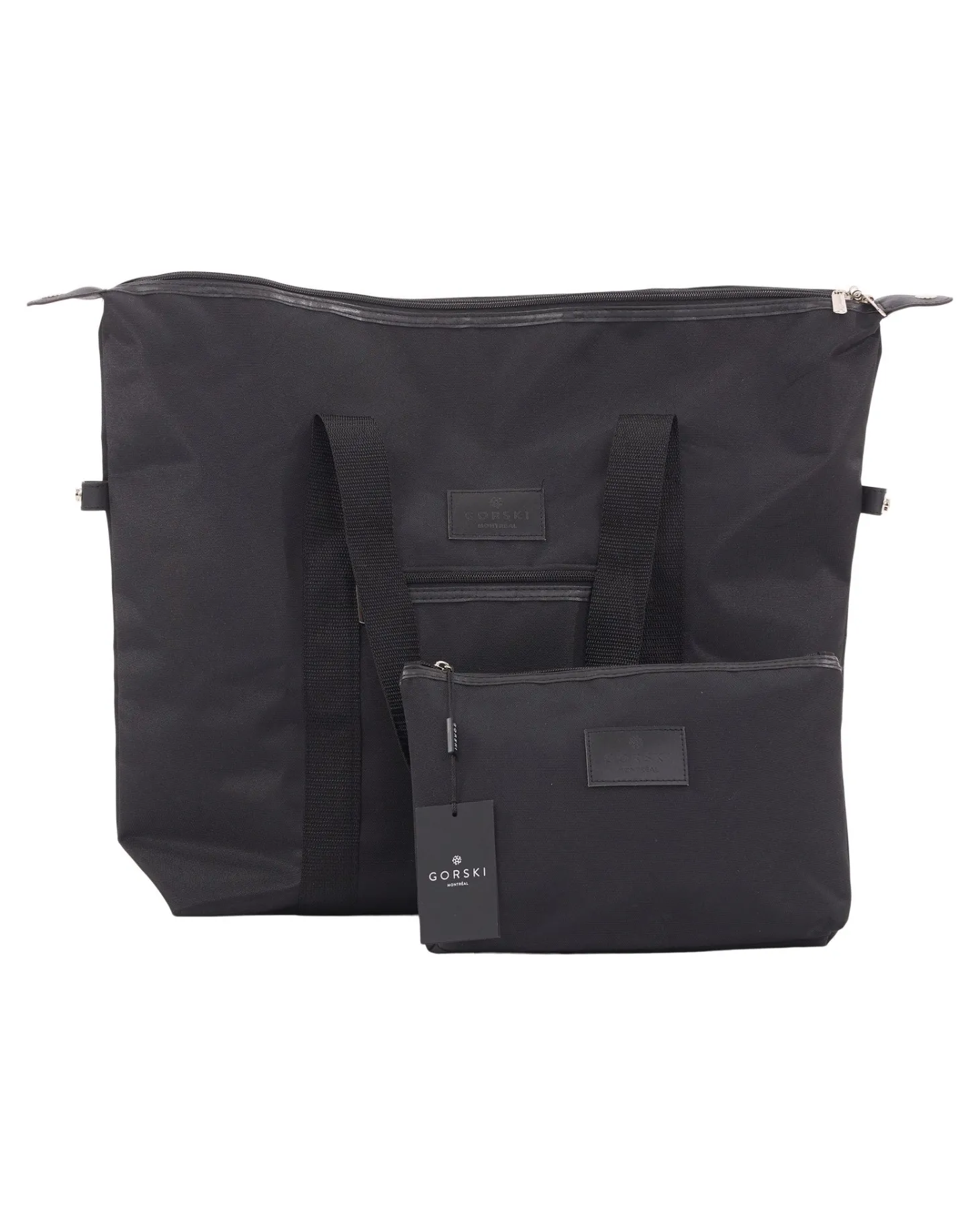 This tote is designed to go where you do. Comes with a smaller accessories pouch inside. Pair it with our GORSKI umbrella for the ultimate travel kit.