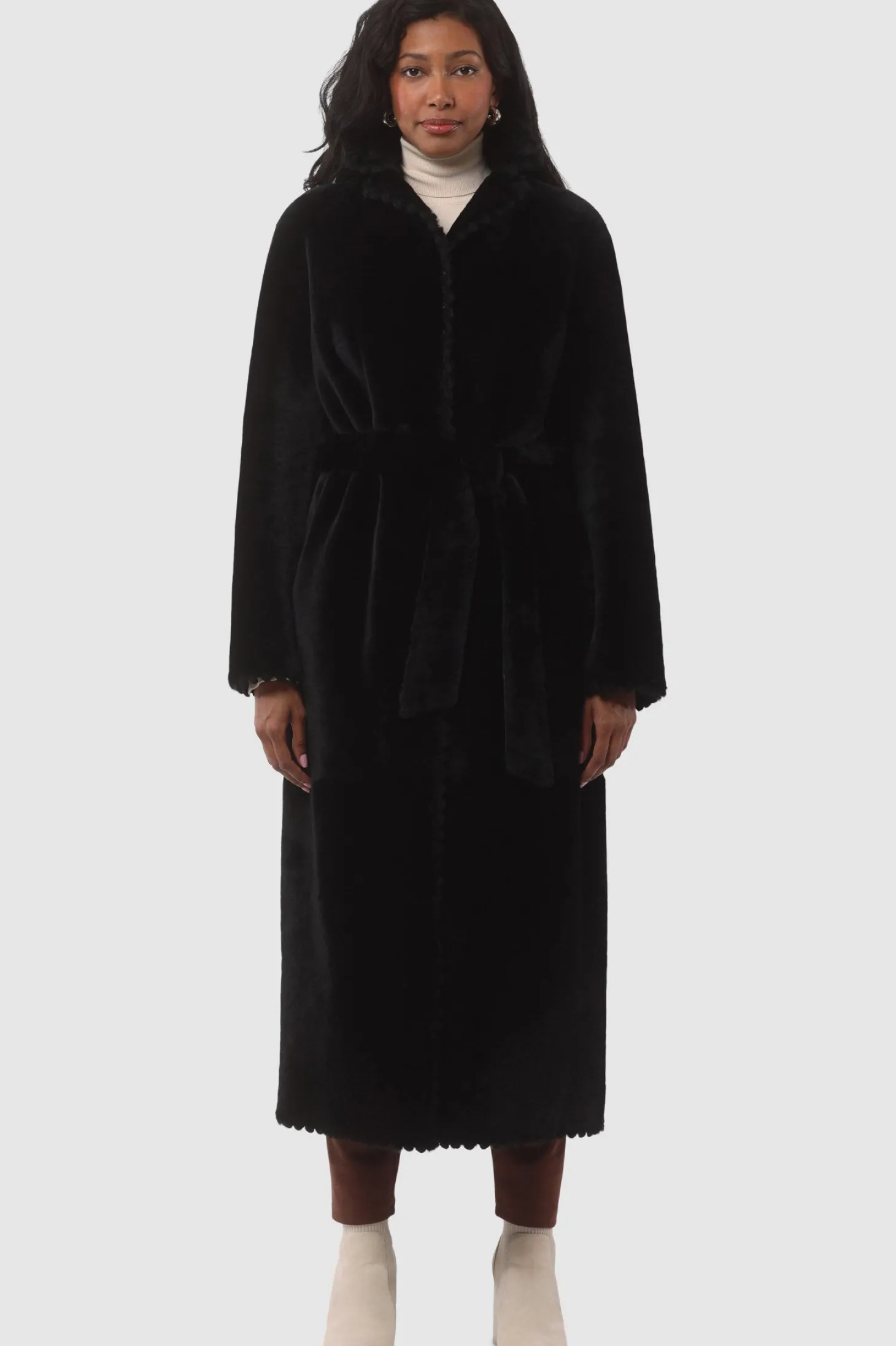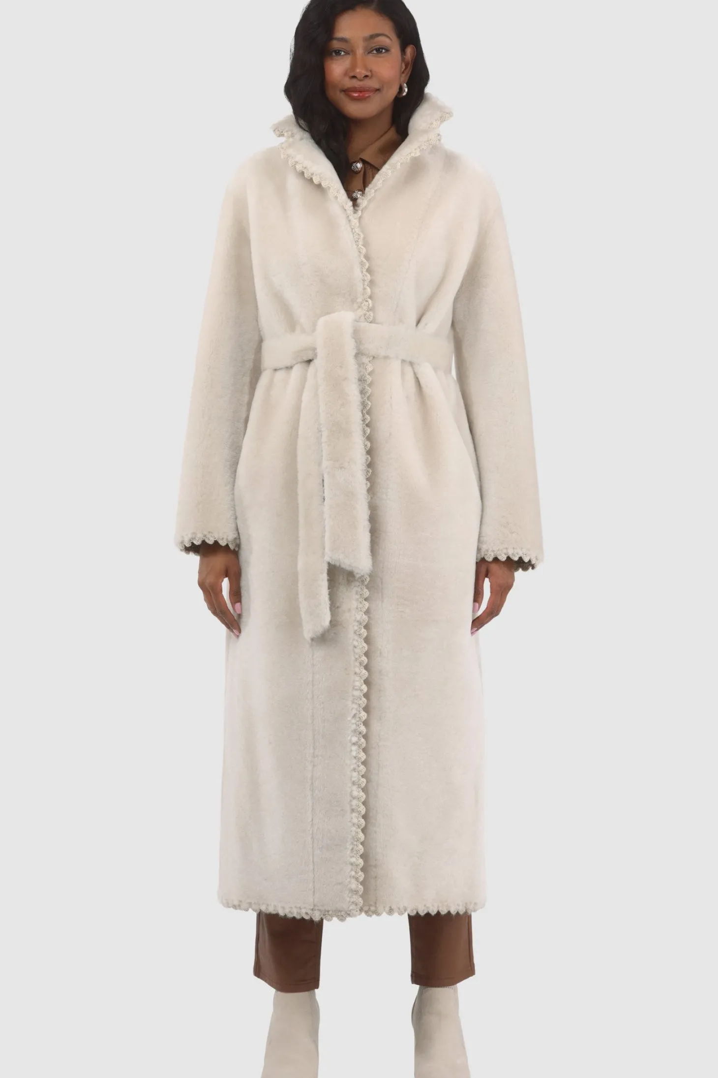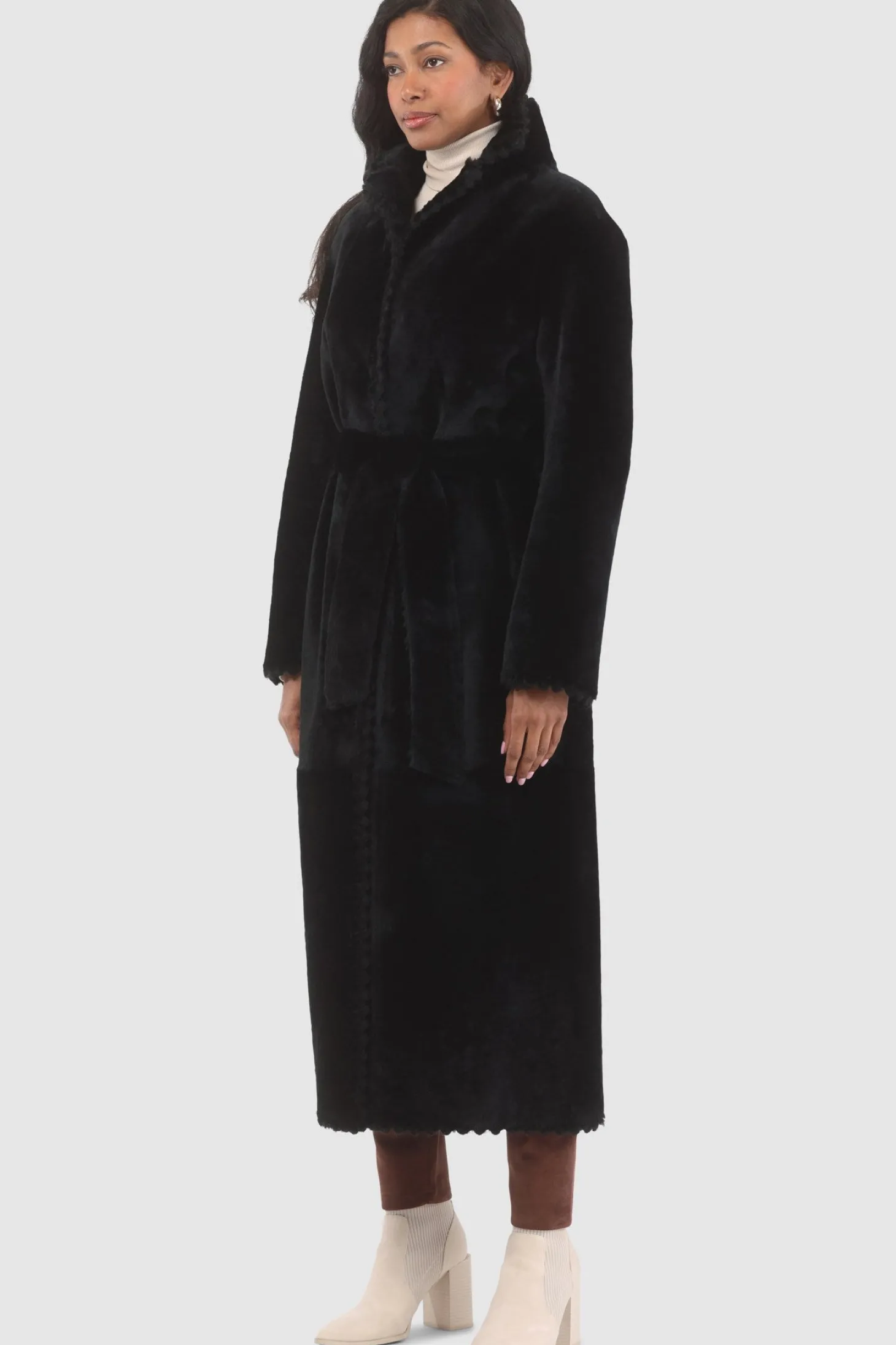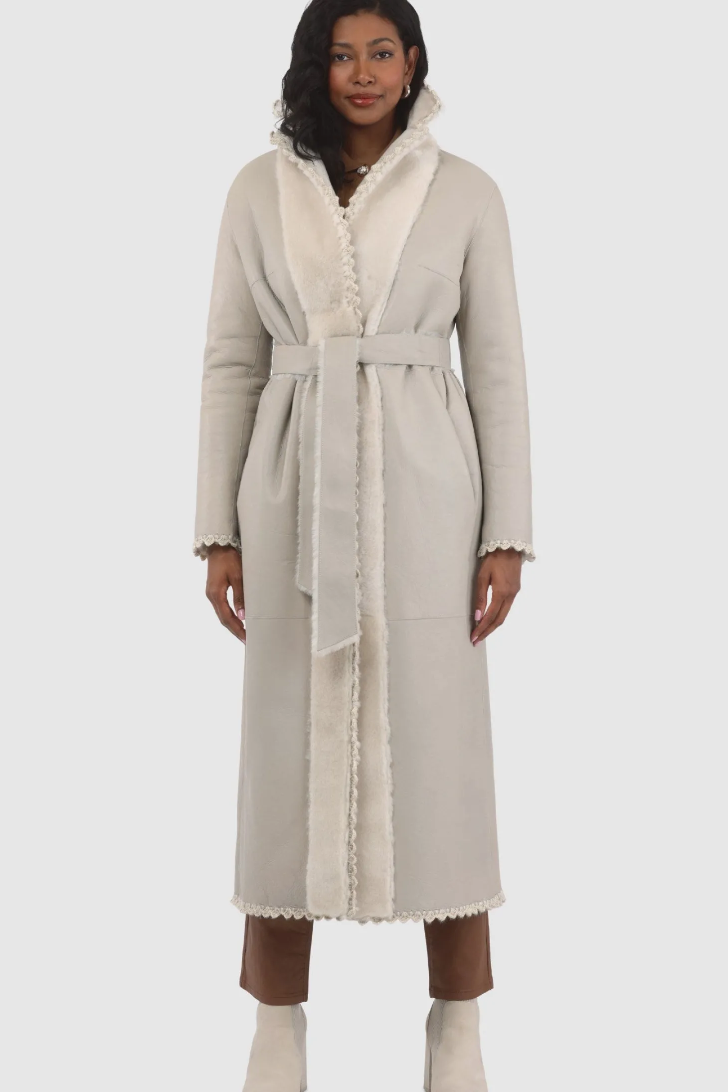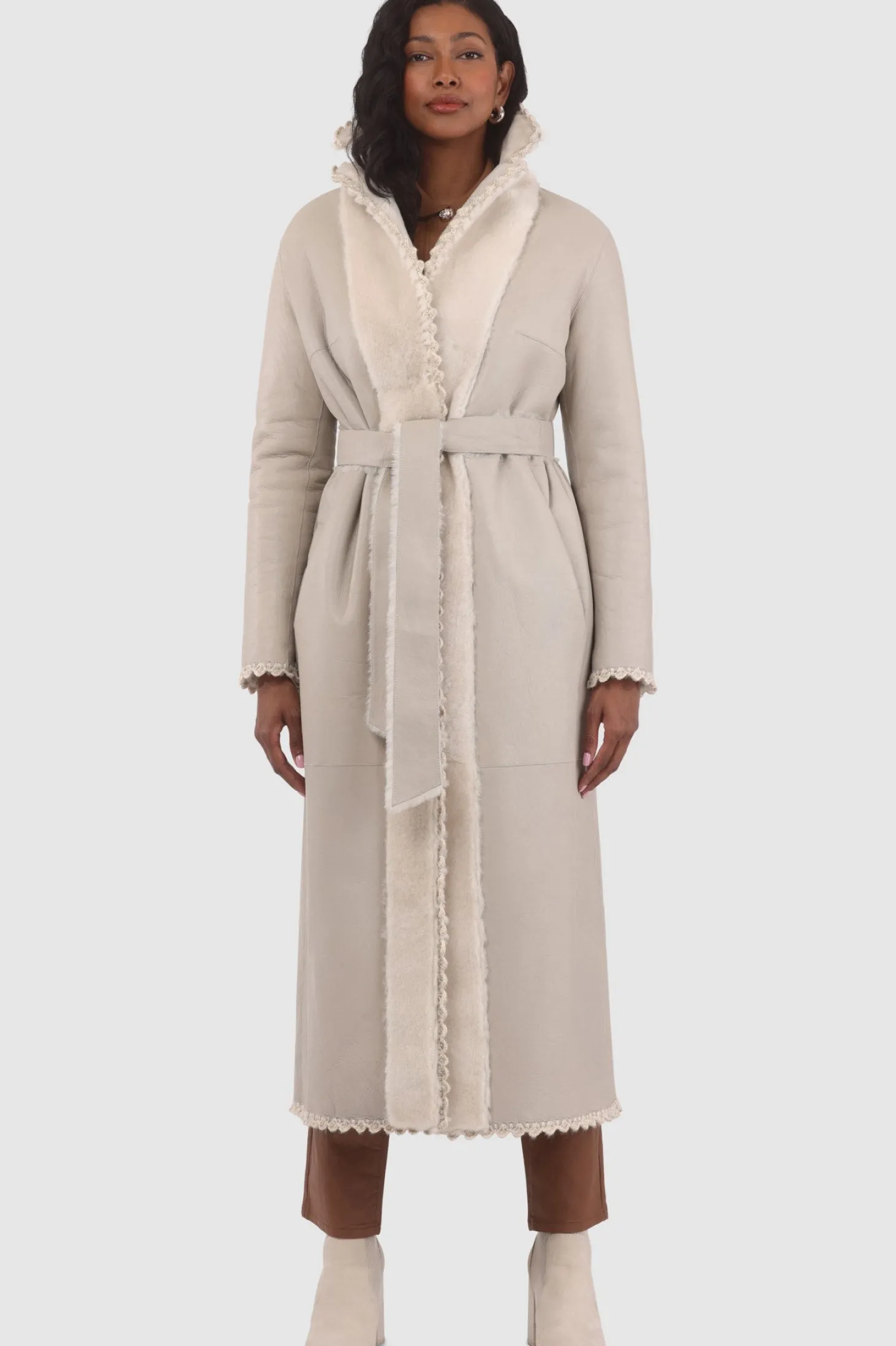 Loro Piana Cashmere & Wool Belted Jacket With Detachable Toscana Shearling Lamb Trim